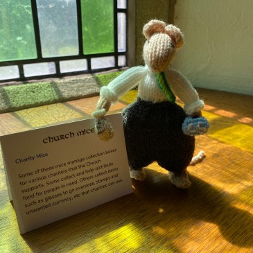Some of these mice manage collection boxes for various charities that the Church Supports. Some collect and help distribute food for people in need. Others collect items such as glasses to go overseas, stamps and unwanted currency, etc that charities can use.